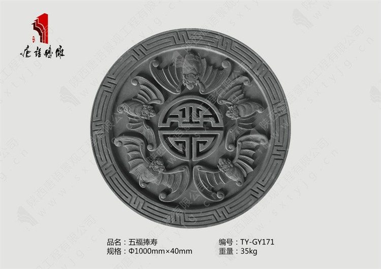 典型的吉样砖雕图案有五谷丰登、子孙满堂、健康长寿等。如表现五谷丰登,连年有余的这类图案大都以五谷图样或 以谷穗为纹样,把人们渴望衣食无忧、生活富足的心愿通过砖 雕纹饰以示向上苍的祈求巧妙而又虔诚地表现出来。连年有余的砖雕装饰艺术纹样通常由鱼和莲花构成。再如子孙满堂,是古人希望自己将家族血脉永远传承的一个心愿,并在建筑屮通过砖雕这种纹饰图案充分表现山来。如唐语砖雕屮表现出来的 《多子多孙》雕刻精致,构图严谨,表达了多子多孙的纯朴愿望。另外,反映寓意健康长寿的砖雕纹饰多种多样,如唐语砖雕屮《五福捧寿》、《福禄万代》等,都寓意福寿双全、福寿安康,迎合了人们趋吉纳祥的心理需求,表达了人们对幸福生活的期盼。