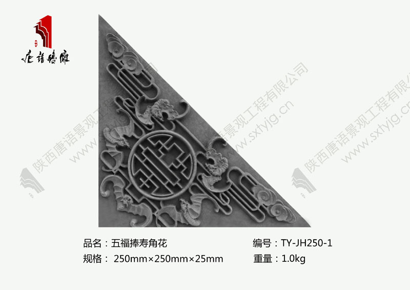 品名:福字角云砖雕 编号:TY-JH250-1 规格:250mm×250mm×25mm 重量:1KG